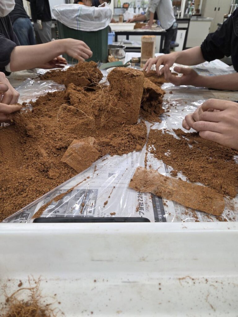 以前沖縄県金武町にて採取させていただいた土壌を用いて、8月からおよそ3か月にわたり、当大学敷地内にてポット栽培試験を行いました。