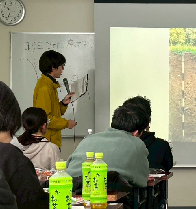 第32回ペドロジスト・トレーニングコースに参加しました! 三重大学にて開催された第32回ペドロジスト・トレーニングコースに当研究室の学生6名が参加しました。土壌断面調査や他の研究室・施設の方々との交流を通して多くのことを学び、実りある調査となりました。 水田断面調査作業の様子 断面調査後の発表会の様子 2025.11.17